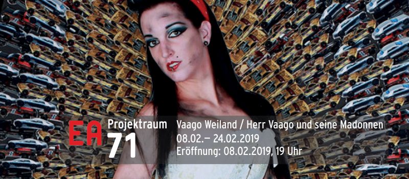 Seit seiner Kindheit fühlt sich Vaago Weiland Marienbildnissen eng verbunden. Jedoch fehlten ihm bislang persönliche Mariendarstellungen. Aus über 3.000 Einzelteilen fertigt er sie in 1,60 m hohen Spitzbögen an – allesamt aus eigenen Fotos collagiert.